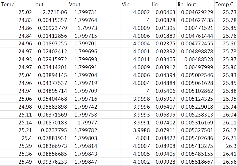 The DPS output voltage channel is set by default to adjust Vout to the set value (4.0V) here in 3 iterations. The voltage setting resolution is 12bits while the measurement resultion is 23bits with an averaging count of 4. The ADC conversion time is 0.5ms in and delays are insrted between successive measurements (1ms) to allow stabilization.