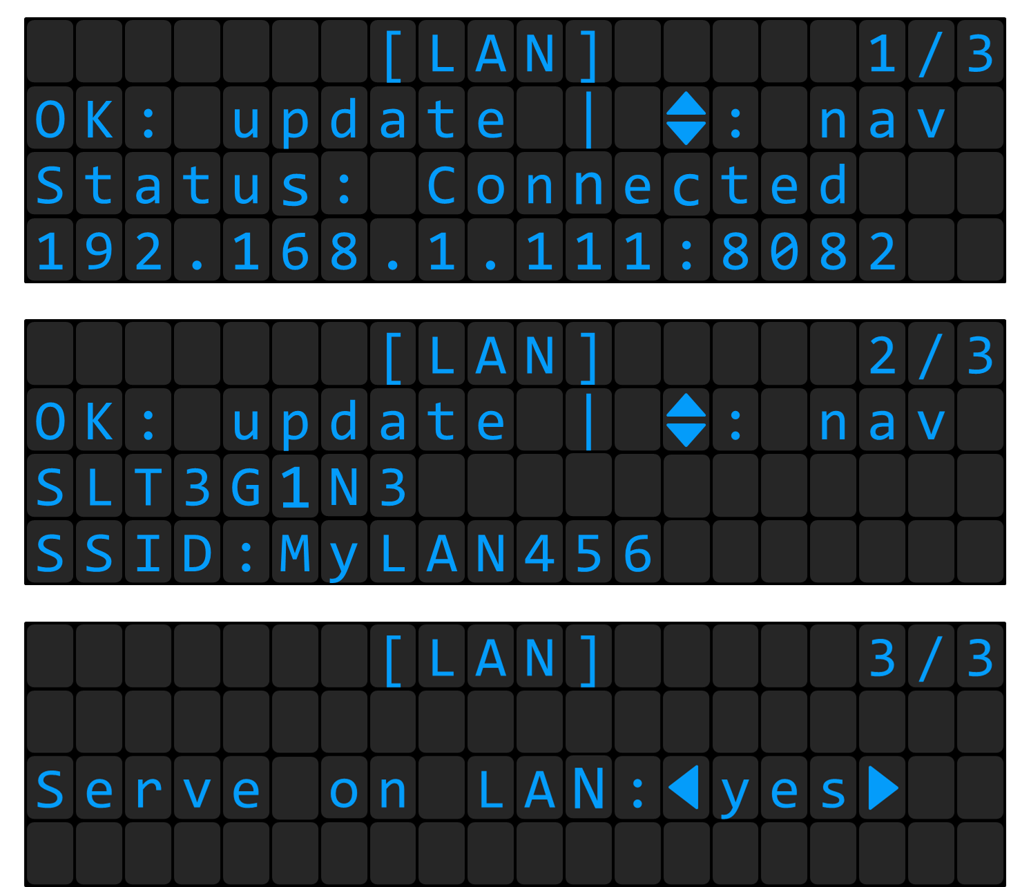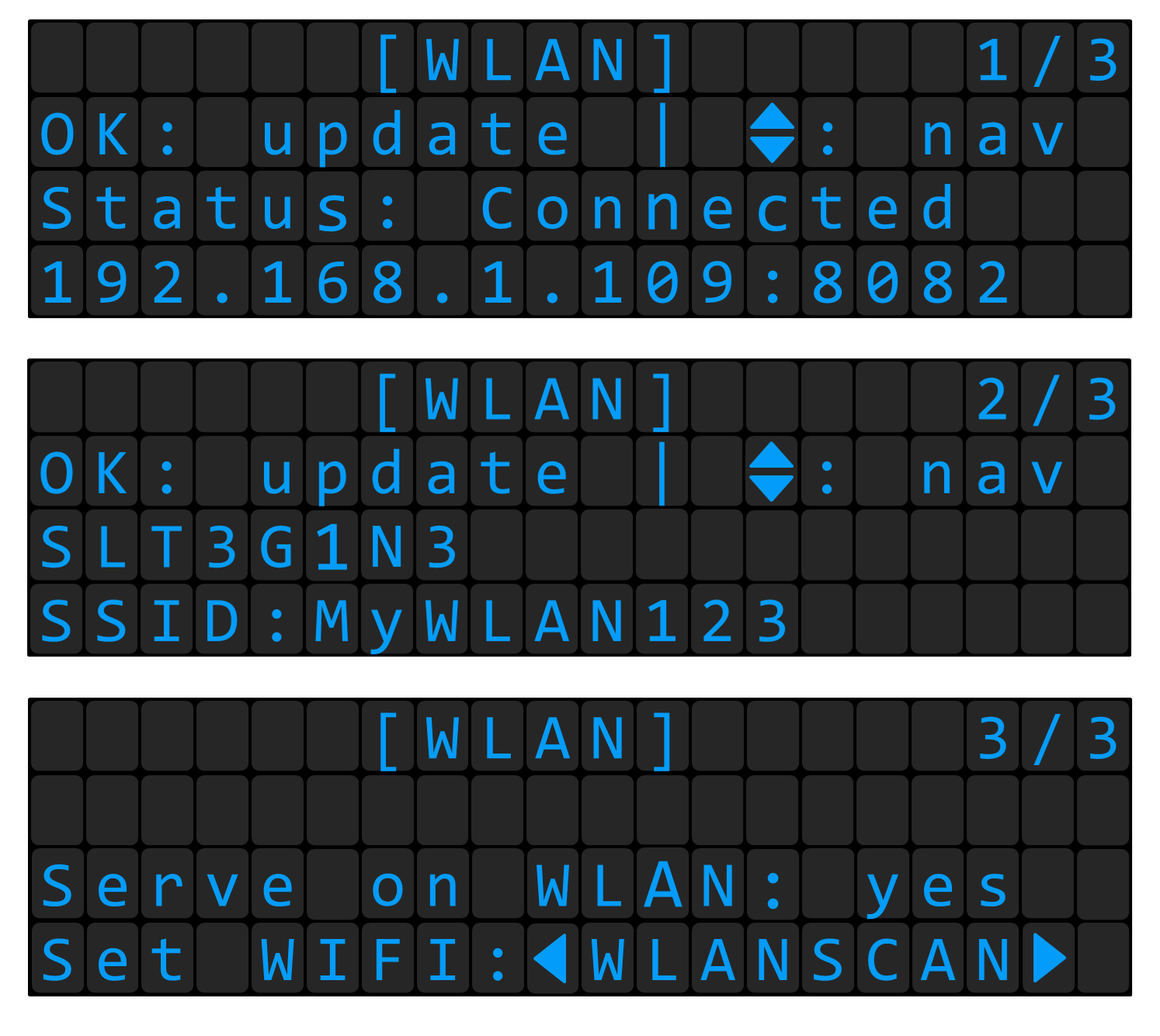 WLAN/LAN menus are available since FW version 1.2.1