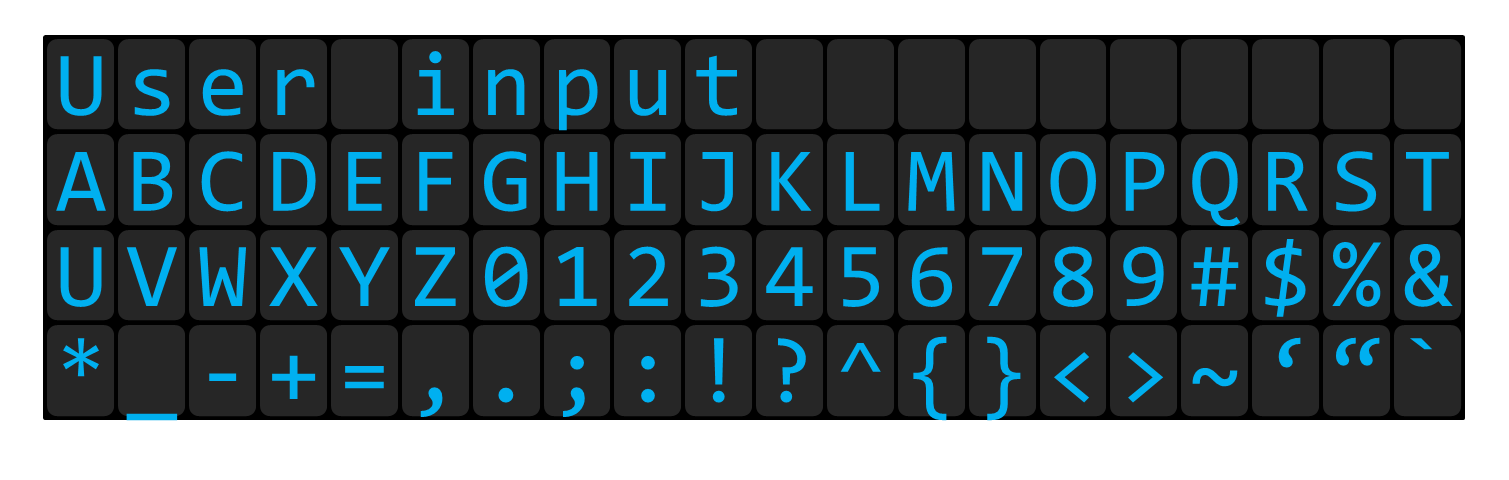 - the other lines are used to display the character set