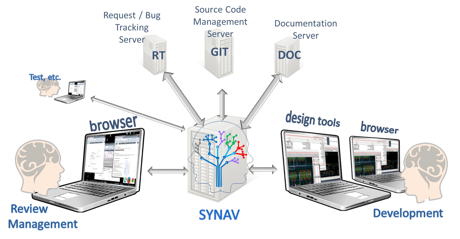 SYNAV™ deploys as a corporate level server centralizing Intellectual Property asset management from the early specification phase to advanced release and derivation phases